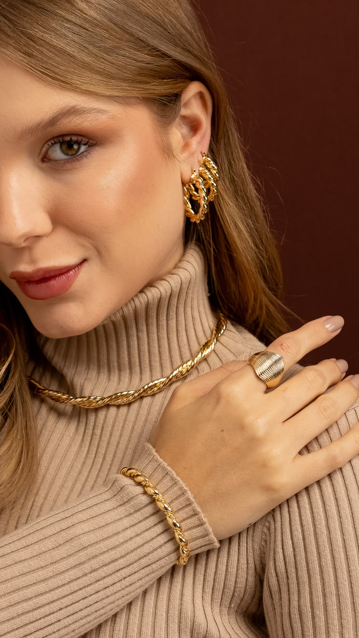 Bijuteriile sunt realizate din materiale precum inox, aliaje metalice sau metale placate cu aur, iar materialul exact este menționat în descrierea fiecărui produs.